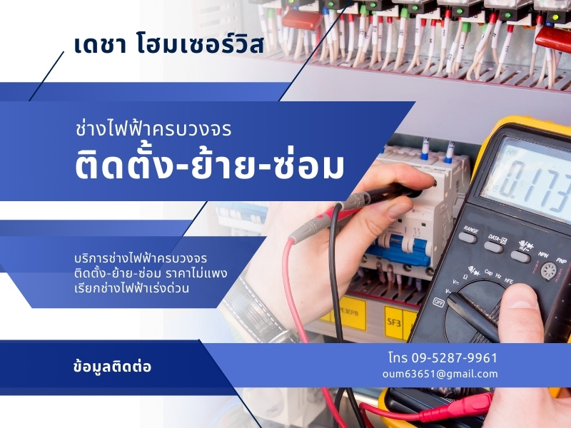ช่างไฟเร่งด่วนใกล้ฉัน กรุงเทพ เดชาโฮมเซอร์วิสบริการงานช่างไฟฟ้าด่วน รวดเร็ว ปลอดภัย พร้อมแก้ไขทุกปัญหาไฟฟ้า ไม่ว่าจะปัญหาไฟฟ้าขัดข้องและต้องการช่างไฟฟ้าฝีมือดี พร้อมให้บริการแบบเร่งด่วน เราคือทีมงานมืออาชีพที่ตอบโจทย์ทุกความต้องการในเรื่องงานไฟฟ้า ด้วยการบริการรวดเร็ว ทันเวลา และปลอดภัย หาเบอร์ช่างซ่อมไฟฟ้าด่วน แก้ไขไฟดับ ไฟตก ไฟช็อต หรือไฟรั่ว บริษัทตรวจสอบระบบไฟฟ้า เพื่อความปลอดภัยและป้องกันปัญหาในอนาคต รับเปลี่ยนอุปกรณ์ไฟฟ้า ซ่อมหรือเปลี่ยนปลั๊กไฟ สวิตช์ไฟ เบรกเกอร์ที่เสียหาย ติดตั้งระบบไฟฟ้าใหม่ สายไฟ หลอดไฟ และอุปกรณ์ไฟฟ้าต่าง ๆ งานปรับปรุงด่วน แก้ปัญหาการใช้ไฟฟ้าไม่เพียงพอ หรืองานเดินสายไฟใหม่ เรามีทีมช่างมากประสบการณ์ ไม่เคยทิ้งงาน ทำงานรวดเร็วโดยคำนึงถึงความปลอดภัย ใช้วัสดุอุปกรณ์มีคุณภาพได้มาตรฐาน รับประกันผลงาน ราคาถูกงบประมาณไม่บานปลาย บริการอย่างรวดเร็วสำหรับพื้นที่ในกรุงเทพ ปทุมธานี และปริมณฑล หาเบอร์ช่างไฟฟ้า โทรด่วนที่..